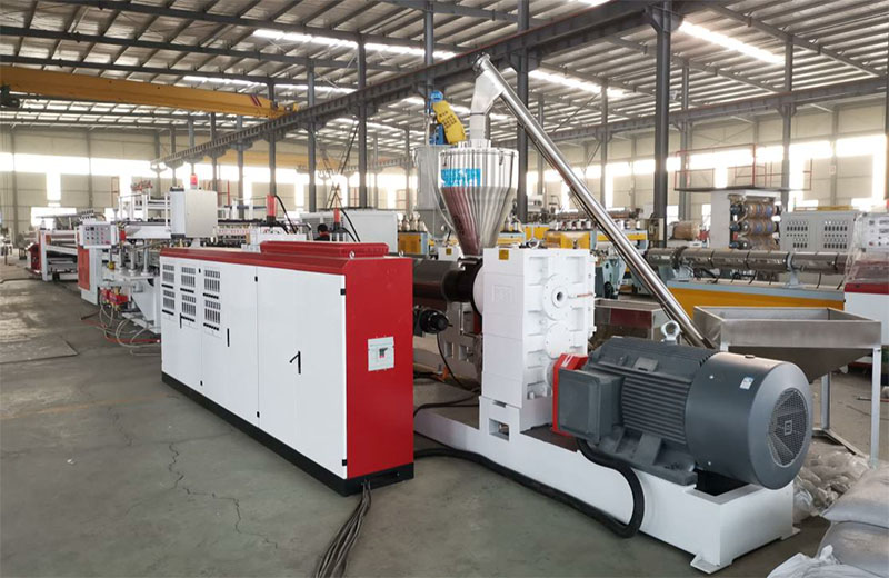 PP 中空建筑模板設(shè)備分為一模單出及一模雙出,并且分為共擠及單出機(jī)型,PP中空建筑模板一模雙出生產(chǎn)線是在傳統(tǒng) 915mm 單出生產(chǎn)線的基礎(chǔ)上,經(jīng)過不斷創(chuàng)新,不斷驗(yàn)證后,推出的全新產(chǎn)品,在滿足大產(chǎn)量,低能耗的同時,提高產(chǎn)品質(zhì)量的穩(wěn)定性。共擠通過三層復(fù)合分配器兩套擠出機(jī)共擠,產(chǎn)品上下表面材料可以復(fù)合均勻,復(fù)合厚度可以根據(jù)需要靈活調(diào)整。