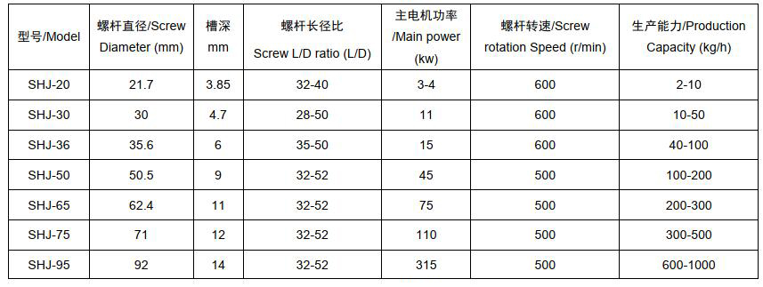SJS 系列平行雙螺桿擠出機廣泛用于共混-改性-增強-氯化聚丙烯和高吸水性樹脂的脫揮處理;可降解母料-聚酰胺縮聚-聚氨脂加聚反應(yīng)的擠出;碳粉-磁粉的造粒-電纜用絕緣料-護套料-低煙低鹵阻燃型 PVC 電纜料及各種硅烷交聯(lián)料的制備等。小機型主要用于科研-教學(xué)。