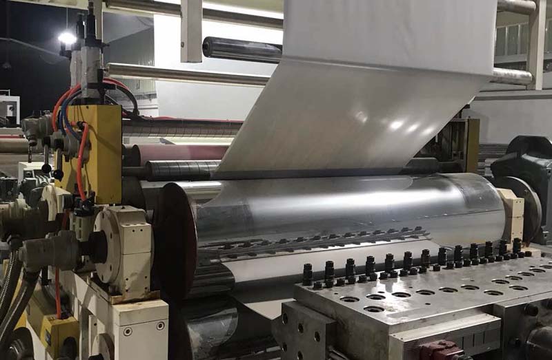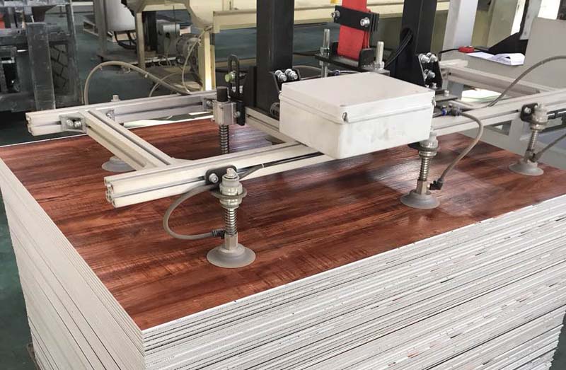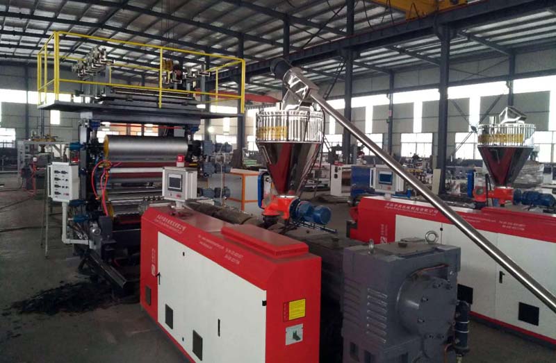 PVC石塑地板四輥加一輥生產(chǎn)線設(shè)備,擠出基材,熱敷彩膜裝飾層和耐磨層,實現(xiàn)一步法,在同一臺設(shè)備上同時完成。第一,表面可熱敷上各種不同顏色的彩膜裝飾層;第二,可直接在板材裝飾層上熱敷耐磨層;第三,可直接做上各種各樣浮雕木紋及各式各樣的花紋;第四,底層軟墊消音層,也可直接熱敷上去。以上四條均可同時在一條生產(chǎn)設(shè)備上完成多層結(jié)合為一體??蓽p少表層處理花紋,耐磨的設(shè)備。減少人工及設(shè)備的投資,大大降低PVC地板生產(chǎn)成本。